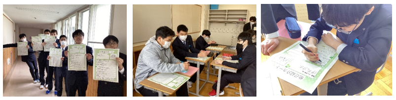 3年生では、ペアになりオリジナルの質問を自分たちで考えた後、新しく3学年の所属になった先生方にインタビューすることができました。丁寧な言葉遣いや礼儀を意識してインタビューを行い、タブレットを使用して他己紹介ポスターを作成しました。生徒たちは少し緊張もありましたが、自分から話を広げようとする様子も見られ、卒業後を見据えた学習活動となりました。