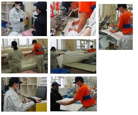クリーニング科では、職員・生徒の自己紹介で場が和んだ後、おしぼり包装やYシャツクリーニングなどの作業種の紹介、2・3年生生徒が1年生に実習室と作業で使用する機械の説明を行いました。おしぼり包装を実際に2・3年生が実演し、1年生も体験することができました。