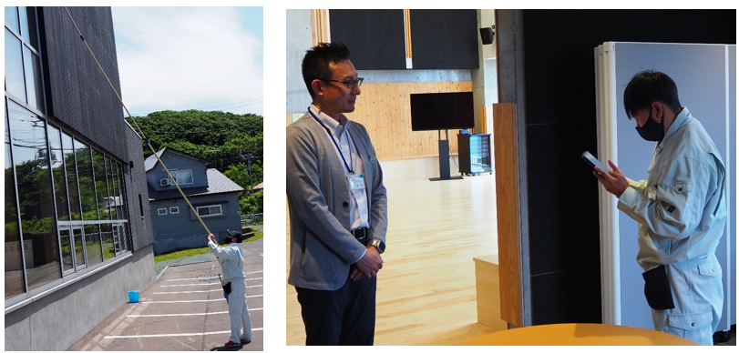 6月27日(木)1時間目~4時間目、クリーニング科2年生生徒・職員4名で小平町多目的防災交流施設「群来る」の窓クリーニングを実施してきました。絶好の窓クリーニング日和の中、生徒・職員一丸となって作業を行ってきました。