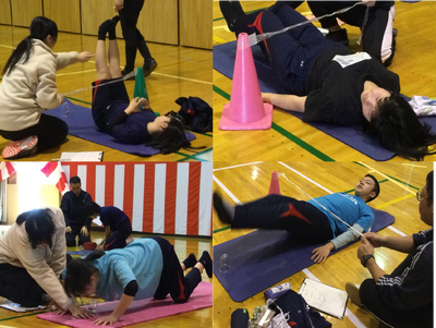 体力つくりでは、「筋力測定」を実施しました。今年度最後の筋力測定では、「1回でも多く、自分に勝つ」ことを目標に、諦めず取り組む様子がありました。記録を更新した生徒もいて、1年間の成果を発揮することができました。