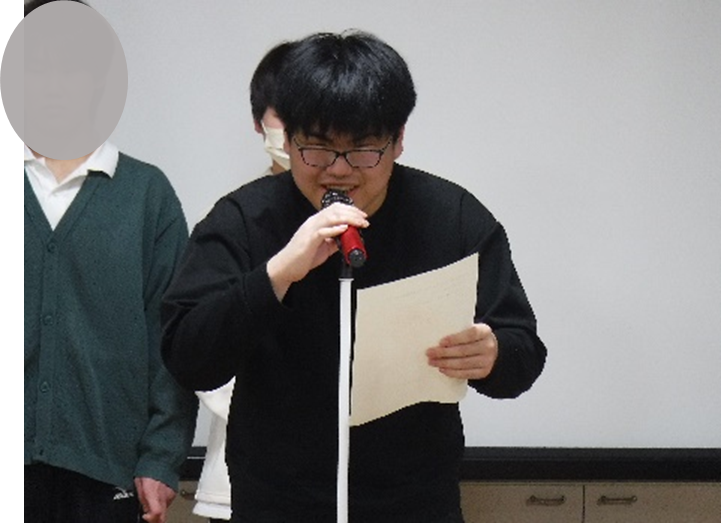 続いて卒業生から心のこもった挨拶があり、在校生も真剣に耳を傾けていました。その後のスライド上映では寄宿舎での思い出が次々と映し出され、笑顔や歓声が広がりました。