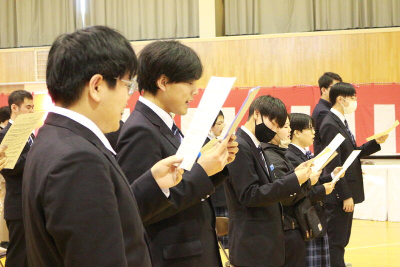 卒業まで2週間を切り、卒業式練習が始まりました。これまでは先輩を送り出す行事だった卒業式に、いよいよ自分たちが主役となって送り出される立場になったということで、3学年の生徒たちは複雑な想いを抱きながら、練習に臨んでいます。